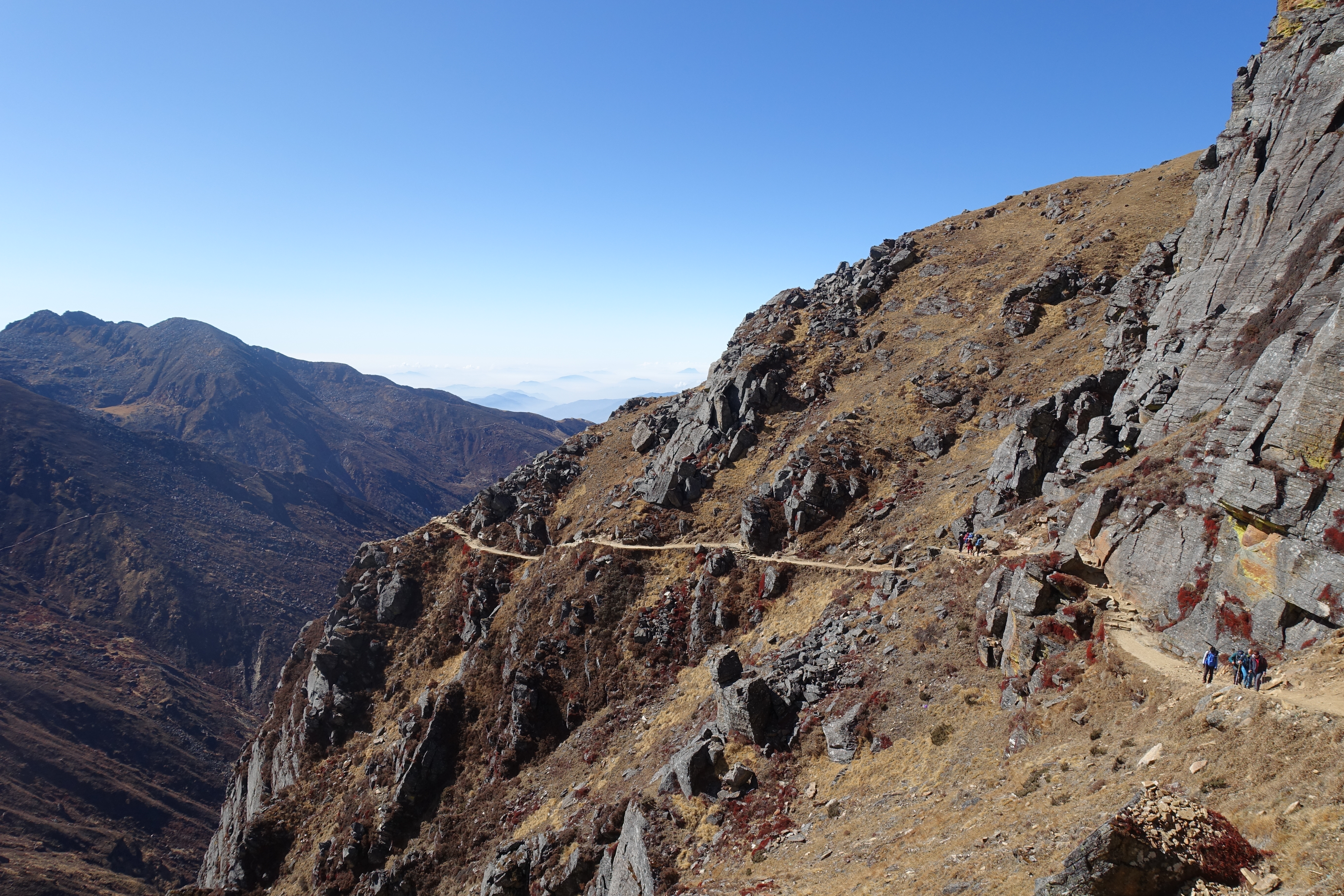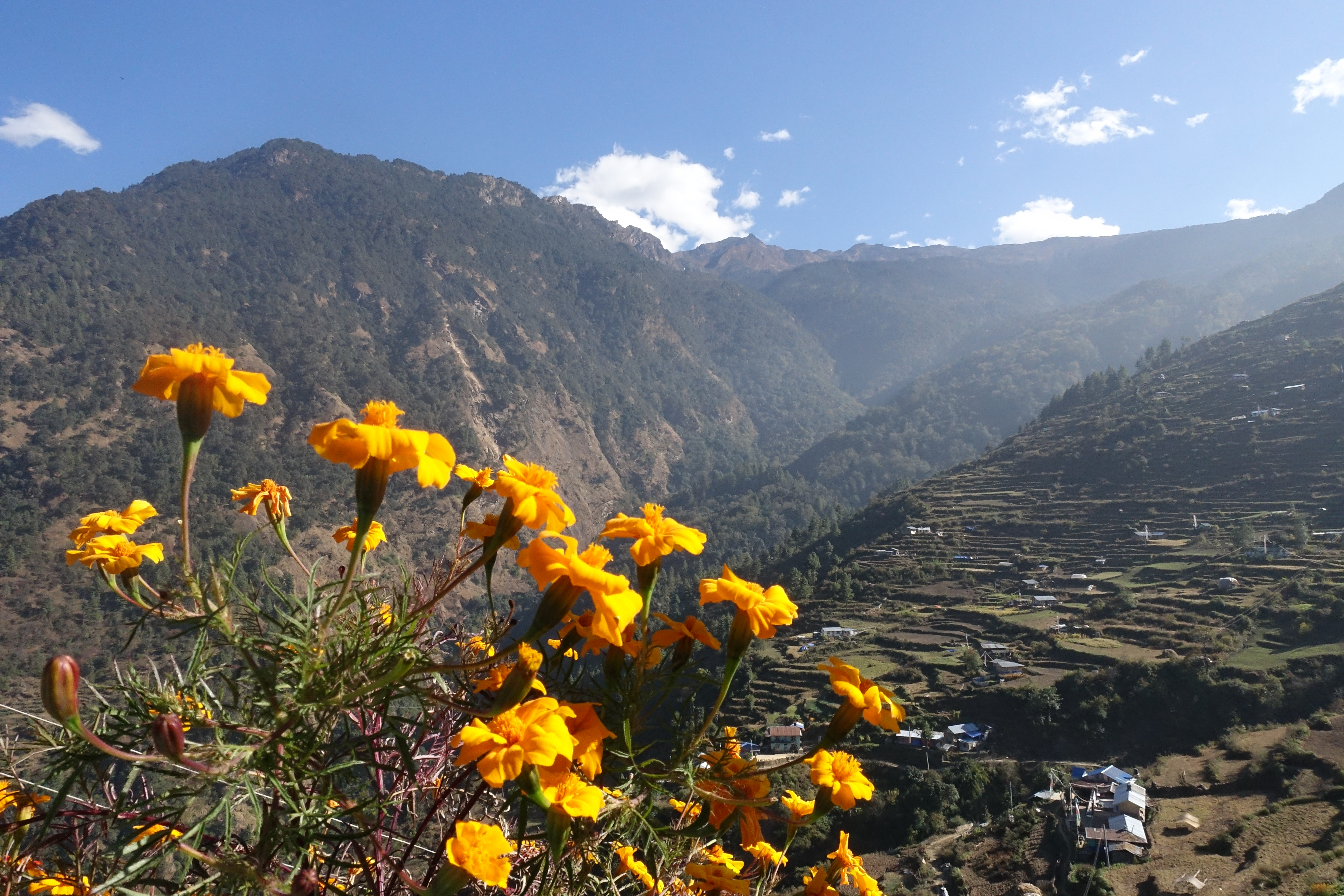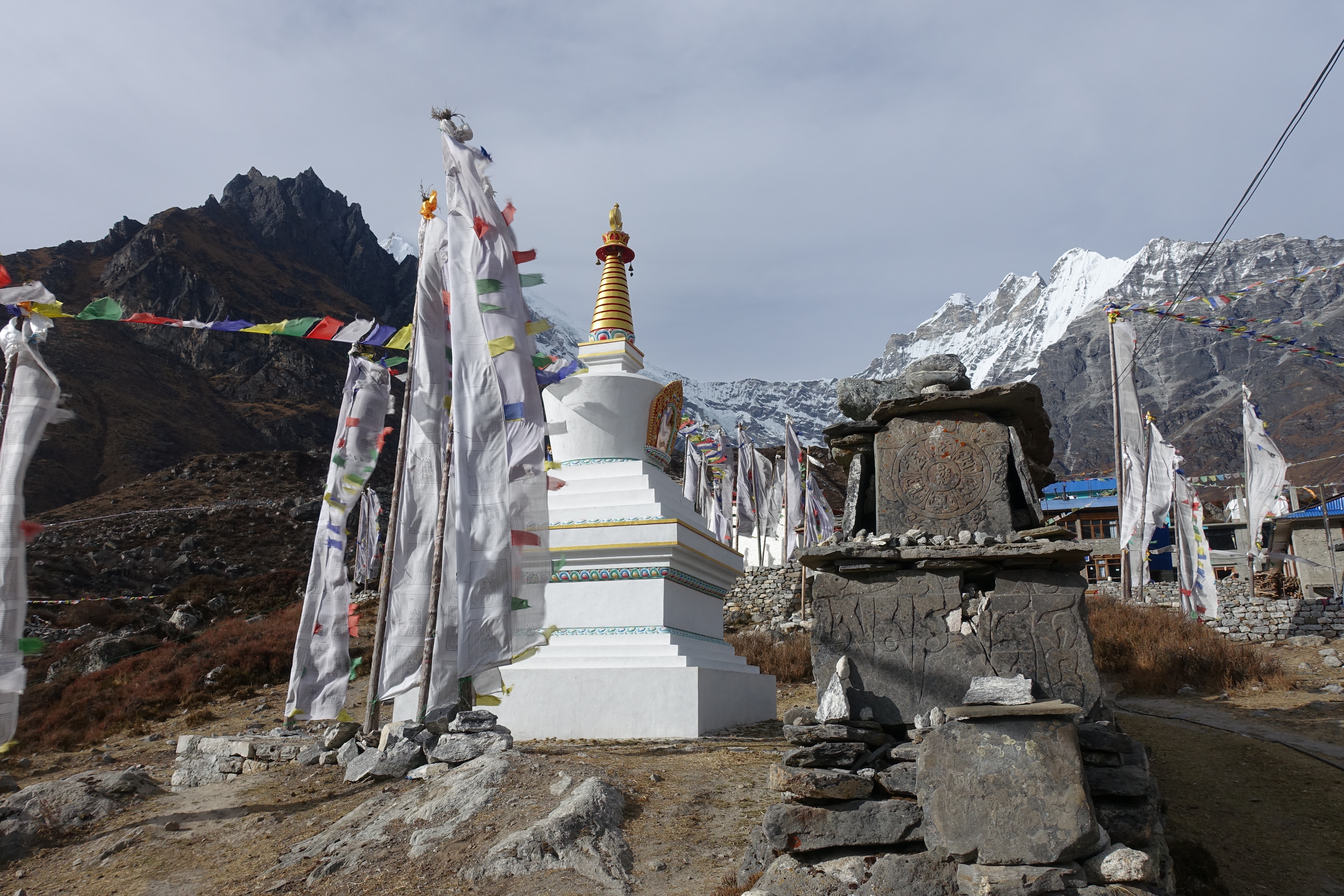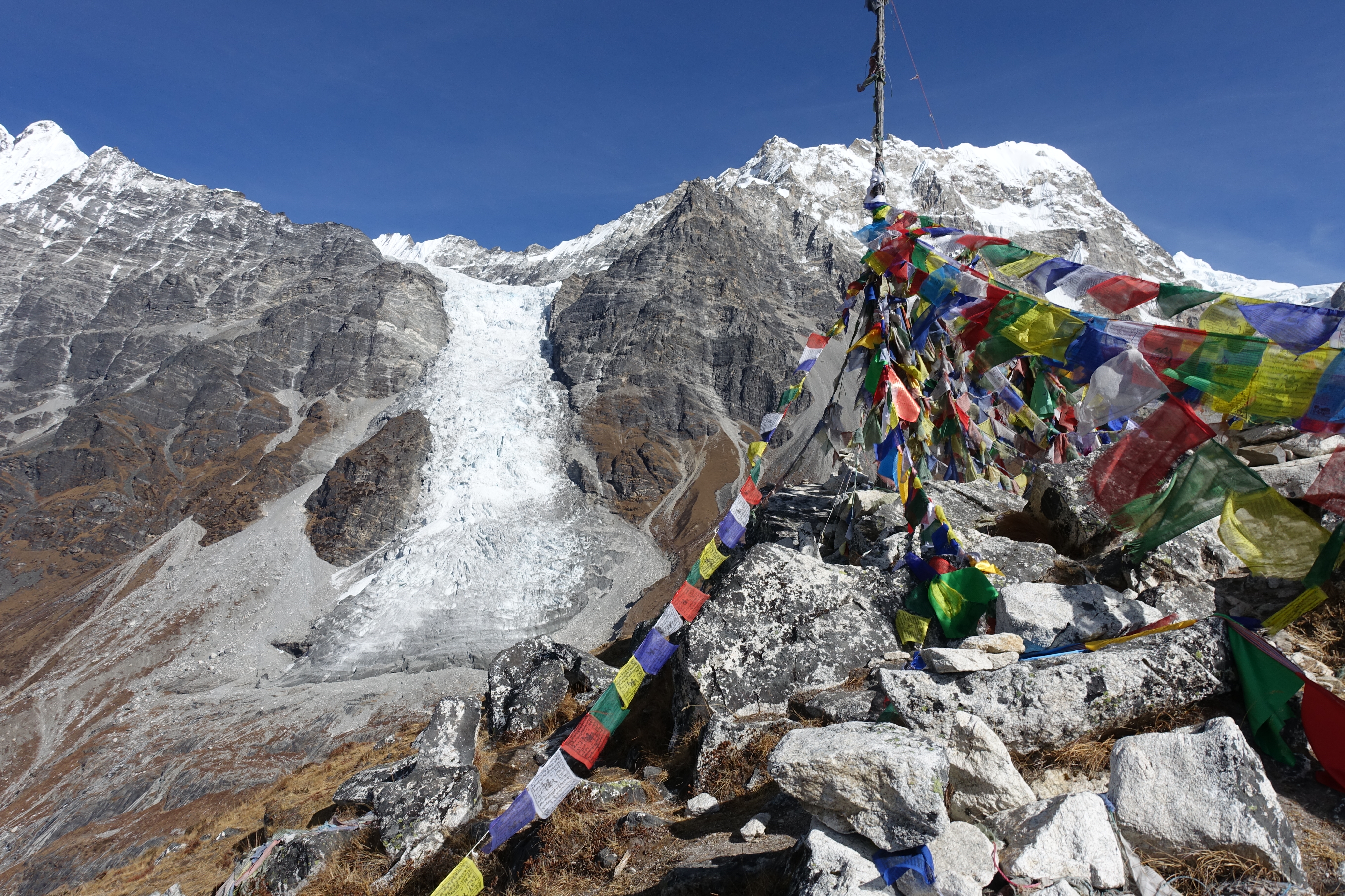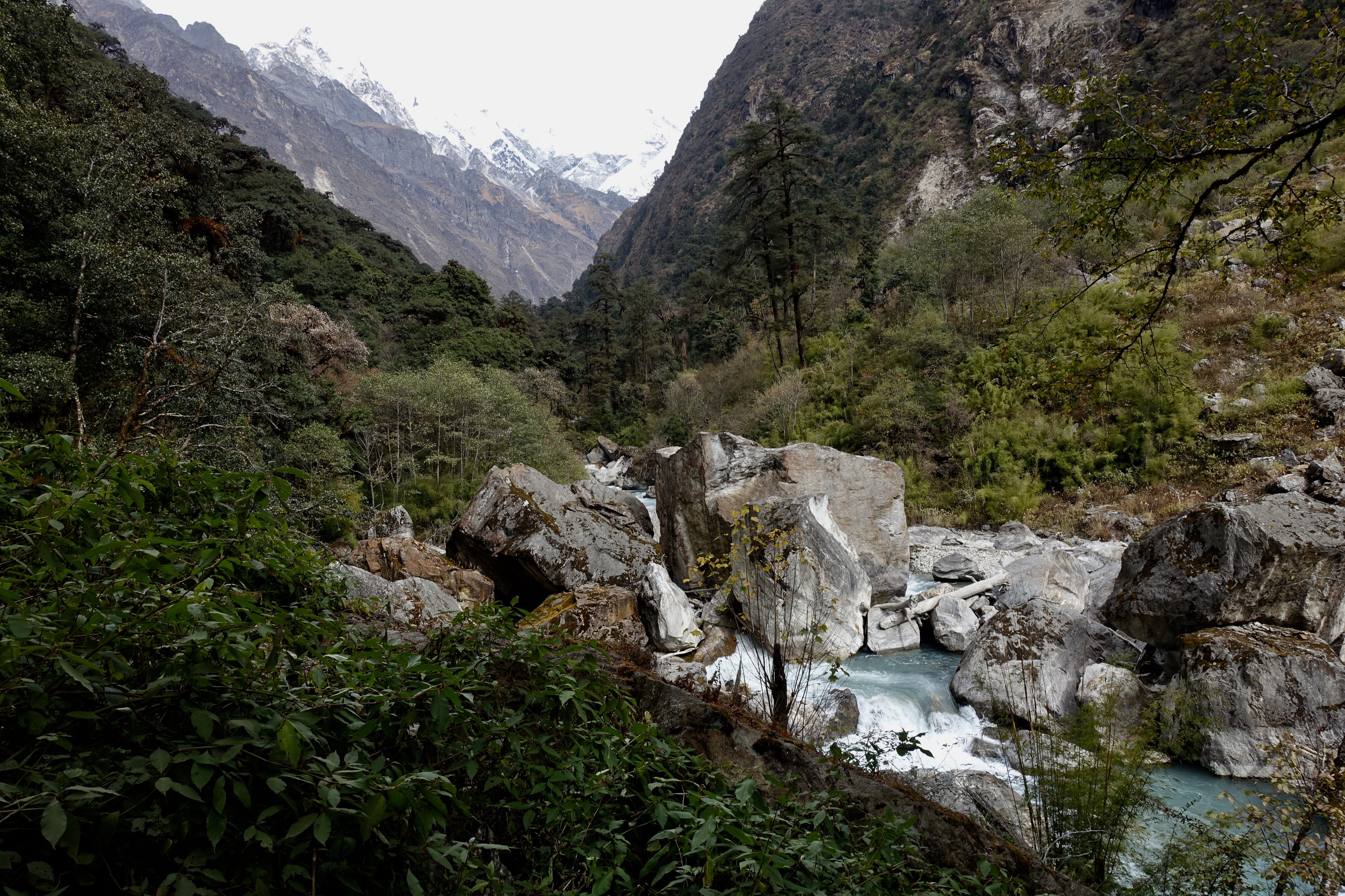 The unimaginable scale of the surrounding mountains, along with the comforting thought that no matter what happens, these mountains will forever be there. The rivers and waterfalls that are so old and powerful they lanced through the thickest rocks splitting them in two. Being part of this mountainous land made me feel more grounded and part of something big. I was also blown away by the astonishing views of Langtang Village and the Langtang Lirung and its glaciers. It’s very confrontational to see the devastation left by the the landslides triggered by the 2015 earthquakes. I do admire the positive mentality of the people involved and the way their houses have been rebuilt from scratch, by the community, travellers, NGO’s and the UN (little help from the government, some say). I admire the working mentality of the mountain people. It takes days to reach the remote villages and everything that’s exported/ imported is carried by foot, or with the help of a mule or horse. We saw young and old people carrying loads up to 90kg on their heads. I was also struck by the spirit of the Nepalese, especially the young children – they aren’t shy! I also enjoyed sitting in silence at gompas (monasteries) and stupas (temples), around prayer flags that whisper the mantra ‘om mani padme hum’ with the wind. The prayer flags salute the elements: clouds, fire, forest, sky and earth, showing the respect the buddhists living in these villages have for the earth. These are just a few things – I loved it all thoroughly and recommend this trek to everyone (no matter your age or fitness).