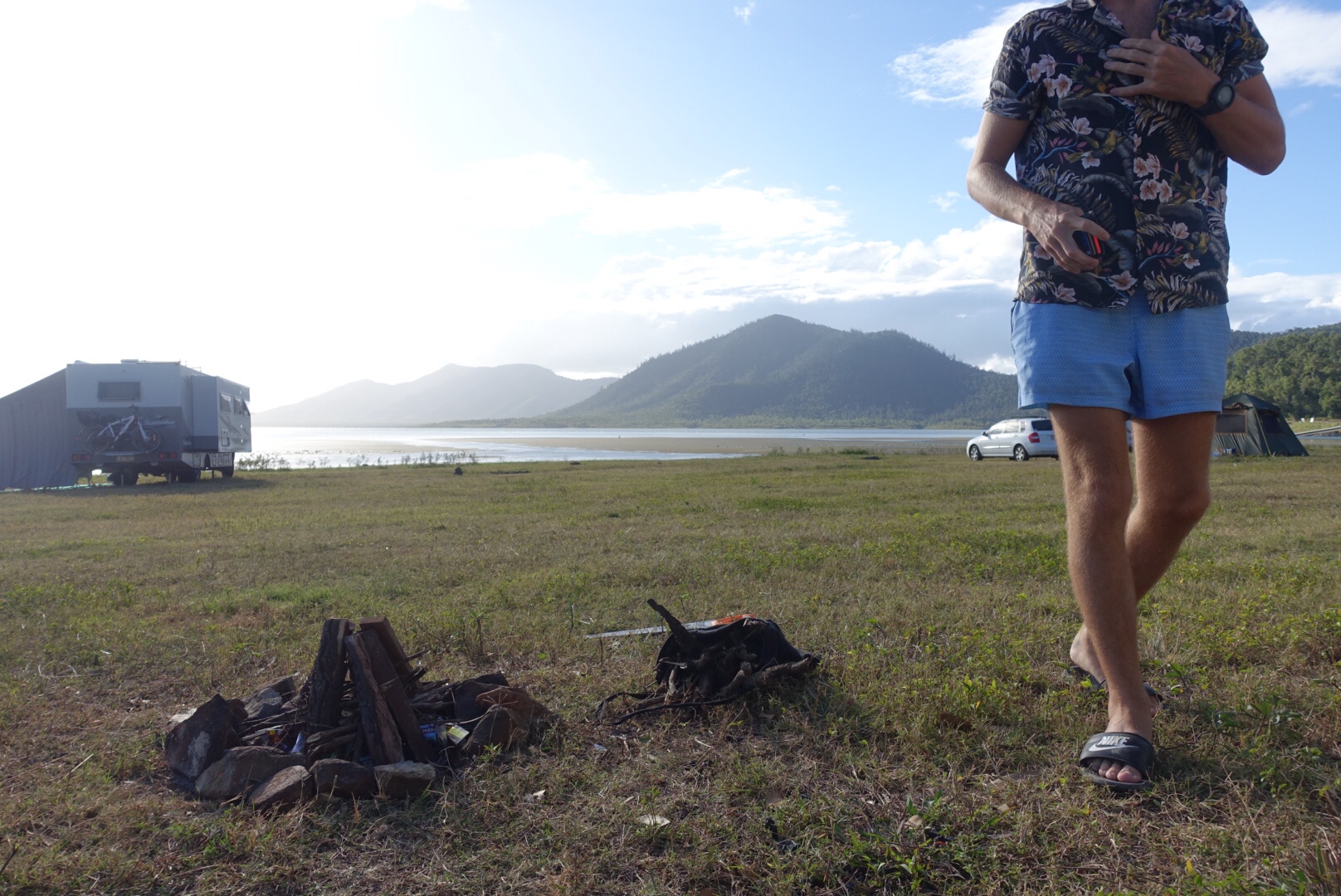 Near Airlie Beach lies Lake Proserpine. A free camp, provided by the council, overlooking a lake full of pelicans, cormorants and egrets. (I didn’t have a clue what kind of birds they were either). A feast for the eyes and very serene, so we decided to stay put. It was here where we met Des, a 73-year old, South African man, who couldn’t be missed. He was travelling alone in a white Mercedes van with trailer, swinging an axe around, whilst listening to Queen on loudspeaker for the entire camp site to hear. Des was a true camper. On the road for about 3 years after having lived quite the turbulent life, losing his wife a few years ago and spending 6 months in hospital after major heart surgery. Des has become a good friend of ours and taught us A LOT about camping, which turned out to be very useful later.
