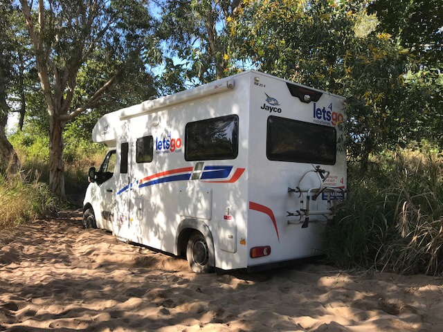 Here we naively learned a lesson about driving a heavy, 2WD motorhome on beach sand: DO NOT ATTEMPT! Long story short: vehicles weighing 3.5 tonnes sink in soft sand. Fast, idiots!