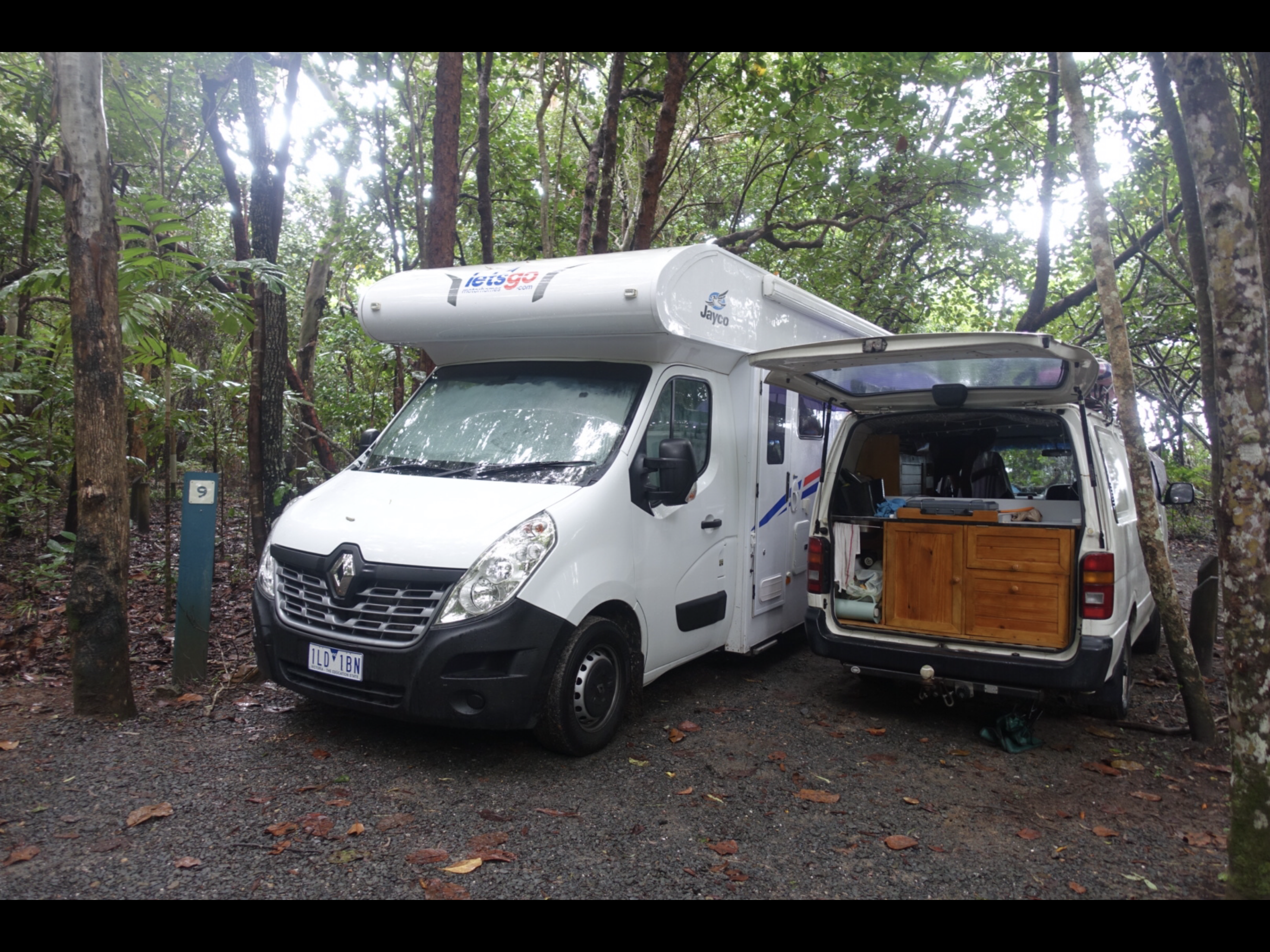 We negotiated a good price a day before we picked up our house-for-a-month in Cairns. We initially went in for a small van, but after some successful bargaining we ended up with a motorhome called ‘THE VOYAGER’ (from Let’s Go Motorhomes). The vehicle was very comfortable but two and a half sizes too large for us. It had a spacious design, a fridge, shower, toilet and sofa that could turn into a double bed. It also had a satellite TV, and unused microwave and air conditioning. We nicknamed it ‘The Monster’.